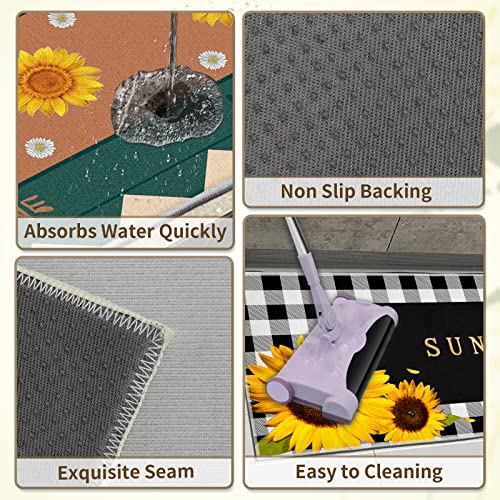 AVJWWD Tappetino da cucina antiscivolo, lavabile, con motivo girasole, girasole, per la decorazione della casa (girasole, grandi fiori)