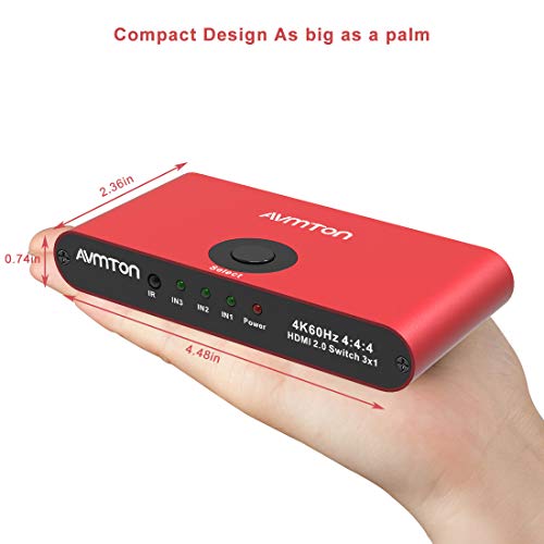 AVMTON HDMI Splitter, AVMTON HDMI 2.0 Splitter 3 in 1 Out, telecomando HDMI, supporto 4K@60HZ HDCP 2.2 3D HD1080P, interruttore HDMI in alluminio per PS4 Pro Xbox PC