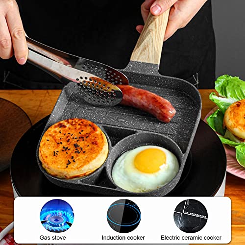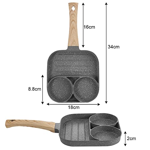 Ampia gamma di applicazioni: la padella per omelette con tre fori ti fornisce uova sane e gustose tutto l'anno. È perfetto per cucinare omelette, pancetta, hamburger, bistecche, pancake, pancake e tutto ciò che si desidera preparare.