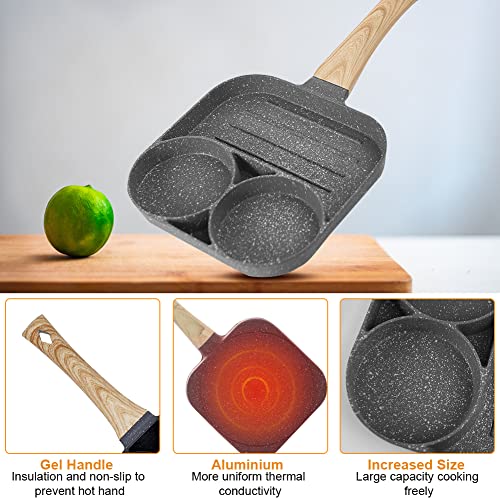 AVNICUD Non-Stick Egg Frying Pan, padella per pancake a 3 fori con rivestimento antiaderente, padella rettangolare con manico anti-scottatura, per colazione, pancake, per fornelli a induzione e a gas