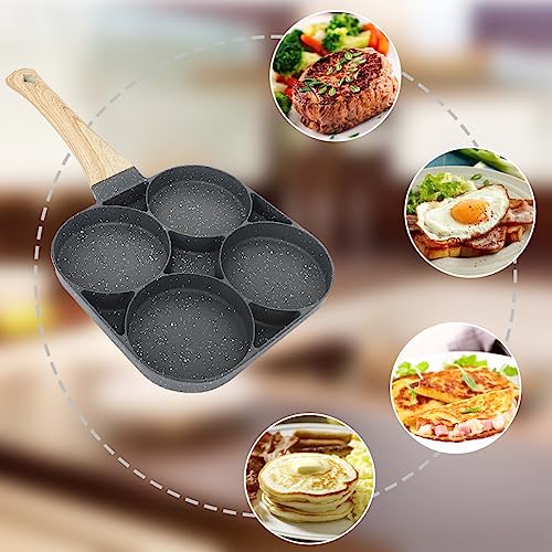 【Ampia gamma di applicazioni】: la padella per omelette a 4 fori ti fornirà uova sane e gustose tutto l'anno. È perfetto per cucinare omelette, pancetta, hamburger, bistecche, pancake, pancake, pancetta e tutto ciò che si desidera preparare.