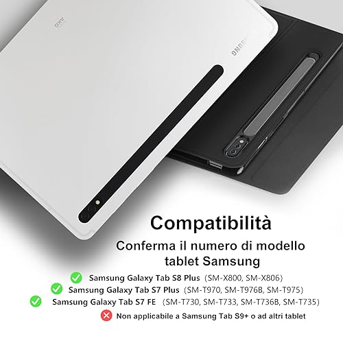 AVNICUD Trackpad Tastiera per Samsung Galaxy Tab S8 Plus | Tastiera per Samsung Galaxy Tab S7 FE/S7 Plus 12.4'' - Italiano QWERTY Touchpad Tastiera Bluetooth Staccabile, Nero