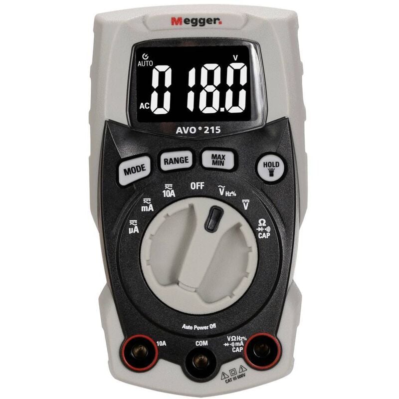 Dettagli tecnici Calibrato di fabbrica senza certificato Categoria di misura (LOV) CAT III 600 V Dimensione del prodotto, larghezza 59 mm Dimensione del prodotto, lunghezza 82 mm Dimensioni (L x L x A) 82 x 59 x 182 mm Dimensioni prodotto Altezza 182 mm Indicatore (digitale/meccanico/analogico) digitale Intervallo di misura A / AC max 10 A Intervallo di misura resistenza 0-40 MΩ Misura di corrente AC/DC Peso 342 g Tipo prodotto Multimetro portatile Multimetro portatile AVO215 AVO ® 215 è un multimetro tascabile che combina una vasta gamma di funzioni in un alloggiamento piccolo e robusto. Il display negativo ad Hohem Contrast, 4000 dpi e retroilluminazione offre all'utente risultati facili da leggere in tutte le condizioni di luce. Grazie alle dimensioni dell'alloggiamento e alla posizione dell'interruttore di funzione e dei tasti, il dispositivo è comodamente in mano e può essere utilizzato anche con una sola mano Testo tradotto automaticamente Punti di forza e dettagli CAT III 600 V