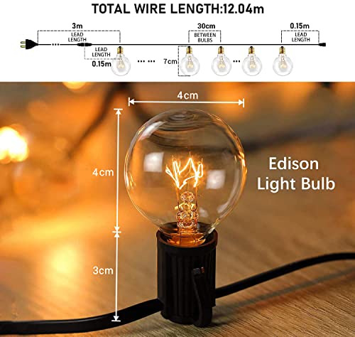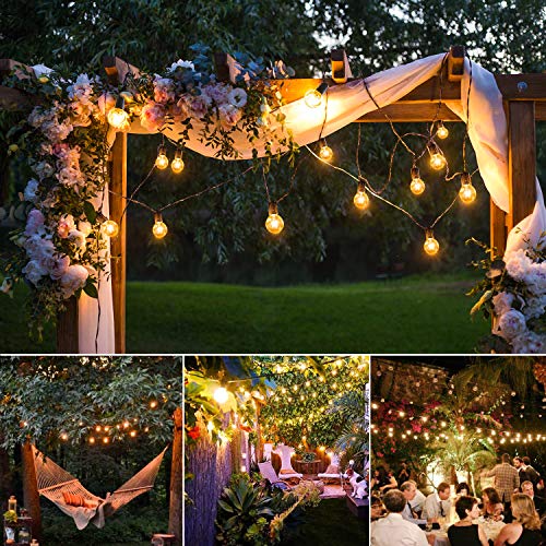 【30 LAMPADINE+3 LAMPADINE DI RICAMBIO】Ogni set di luci da esterno da 12 m sarà saldamente imballata in schiuma EPE per garantire una migliore resistenza e una protezione infrangibile. 30 lampadine e 3 lampadine di ricambio saranno incluse in ogni confezione per la sostituzione quando necessario. Tutte le lampadine sono collegate in parallelo, il che significa che quando una lampadina si guasta, le altre lampadine rimarranno illuminate, in modo da non dover sostituire l'intera stringa di luci.