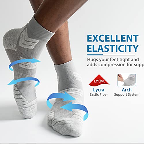 【Calzini da Sportivi ad Elevata Elasticità】- Il tessuto presenta il 5% di fibra di Lycra, che migliora notevolmente l'elasticità e l'estensibilità delle calzini running uomo. Non si deformano o restringono nemmeno dopo tanti lavaggi. Questi calzini uomo sportivi sono in grado di mantenere l'arco del piede stabile e sicuro, favorire l'afflusso del sangue, ridurre l'affaticamento del corpo, aiutare il recupero funzionale e migliorare le prestazioni sportive.