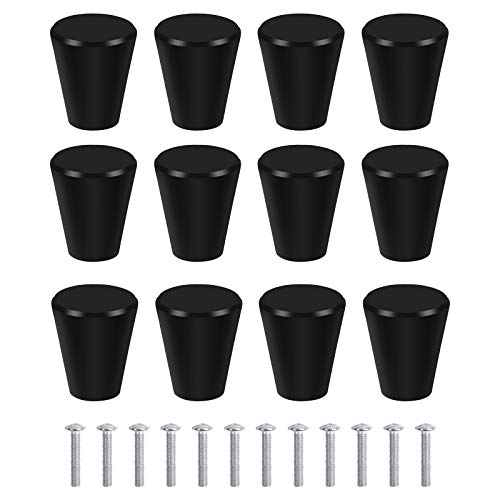 AvoDovA 12 Pezzi Nero Pomelli per Cassetto, 20mm Pomelli per Porta, Pomolo per Mobile con Viti, Manopole per Armadio, Pomelli in Lega di Alluminio, Coniche Manopole per Porta Cassetti Bagno Cucina