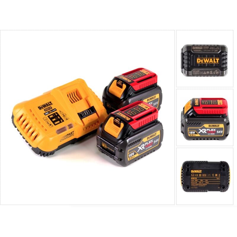 Contenuto della consegna: - 1x caricabatterie rapido DeWalt DCB 118 XR FlexVolt 54 V / 18 V - 2x batteria Dewalt DCB 546 XR FlexVolt 54 V / 18 V 6,0 Ah Li-lon Descrizione del prodotto: Il caricabatterie rapido DeWalt 118 carica tutte le batterie DEWALT XR da 18,0 Volt fino a 8 A e le batterie DeWalt FLEXVOLT (54,0 o 18,0 Volt con max. 6,0 Ah). Inoltre, il processo di carica a 2 fasi del DeWalt DCB 118, con uno speciale raffreddamento a ventola, garantisce una lunga durata della batteria con la massima capacità di stoccaggio grazie a una carica particolarmente delicata. Il display a LED integrato nella DCB 118 DeWalt fornisce informazioni sullo stato della batteria e della carica, garantendo il massimo comfort durante il lavoro. Inoltre, il caricabatterie rapido DCB 118 può essere montato a parete e le sue dimensioni compatte lo rendono facile da montare. Il caricabatterie rapido DeWalt DCB 118 XR FlexVolt 54 V / 18 V viene fornito con due batterie DeWalt DCB 546 XR FlexVolt 54 / 18 V