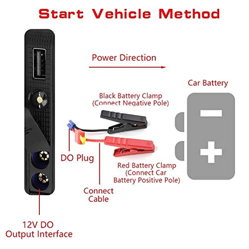 Compatibile: Auto Jump Starter è in grado di iniziare la maggior parte dei motori 12V sotto la benzina 3.0L.Batteria ad alta capacità per caricare i tuoi dispositivi elettronici, come per telefoni cellulari, mp3, mp4, mp5, fotocamere digitali, così via.Avviatore di salto ad alta efficienza per i veicoli di emergenza che iniziano / a manovella.