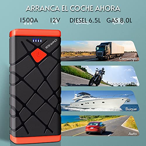 【Grande capacità】Avviamento per auto con 16000mah Dotato di una POTENTE corrente di picco di 1500 A, può avviare facilmente veicoli a 12V (fino a 8L benzina o 6,5L motori diesel). Adatto per auto, camion, motociclette, moto d'acqua, tosaerba, yacht, pick-up, motoslitte, ecc.
