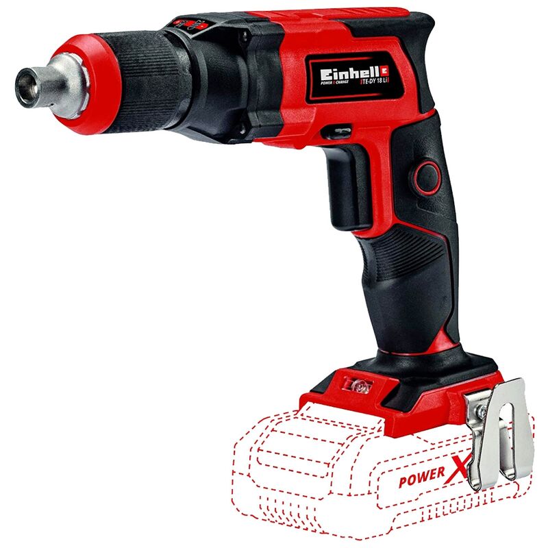Descrizione Prodotto L' Avvitatore per cartongesso Einhell a batteria TE-DY 18 Li-solo è un piccolo attrezzo realizzato specificatamente per avvitare e svitare viti sul cartongesso, materiale sempre più utilizzato in edilizia sia nelle nuove costruzioni che nel recupero di strutture già esistenti. La forma ergonomica ha dimensioni molto ridotte rispetto ad altri utensili della medesima gamma;