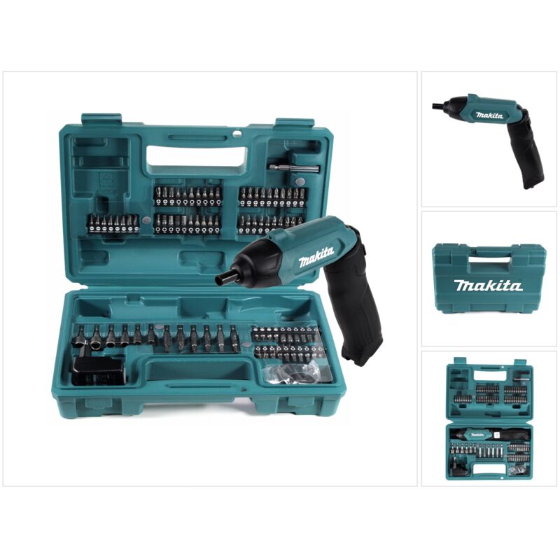 Dotazione: - 1x Makita DF 001 DW Akku Stabschrauber - 1x Alimentatore a spina - 1x Cavo USB - 1x Valigetta di trasporto - 1x Set di 81 accessori Descrizione prodotto: L'avvitatore a batteria DF 001 DW di Makita è dotato di un'impugnatura pieghevole che consente un adattamento ottimale alla rispettiva area di lavoro. Questo significa che l'avvitatore a batteria può essere utilizzato anche in luoghi stretti e difficili da raggiungere. La batteria 3.6 Li-ion è integrata in modo permanente in questo modello e può essere caricata tramite una porta micro USB utilizzando il cavo USB in dotazione. Per l'utilizzo dei comuni bit, il cacciavite manuale è dotato di una presa esagonale da ¼″. Un LED luminoso sopra la presa assicura una buona visione dell'area di lavoro anche in aree scarsamente illuminate. È ideale per l'uso su veicoli o nel modellismo. Oltre all'avvitatore, all'alimentatore e al cavo, la fornitura comprende anche un set di accessori di 81 pezzi con vari attacchi popolari. Dati