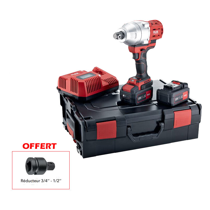 Dettagli: Il sistema di gestione elettronica (EMS) protegge la macchina, ne prolunga la vita e ne aumenta l'efficienza Motore brushless con efficienza migliorata e durata maggiore Freno elettronico rapido Controllo della velocità a variazione continua Interruttore di accelerazione con blocco dell'avviamento Robusto alloggiamento in alluminio pressofuso Un potente meccanismo a impatto per la massima efficienza consente di allentare le connessioni a vite bloccate, ad esempio quelle arrugginite, anche in applicazioni estreme Presa quadrata per bussole a percussione da 3/4 Maniglia disaccoppiata dal motore tramite un elemento di smorzamento per ridurre significativamente le vibrazioni Impugnatura ergonomica e antiscivolo con presa morbida Luce LED integrata con funzione di illuminazione continua Display a LED per la capacità della batteria Sistema di batterie FLEX: funziona con batterie da 18 V Attrezzature: 1 IW 3/4 18,0-EC 1 riduttore 3/4'-1/2''-c 2 batterie 5,0 Ah AP 18.0/5.0 1