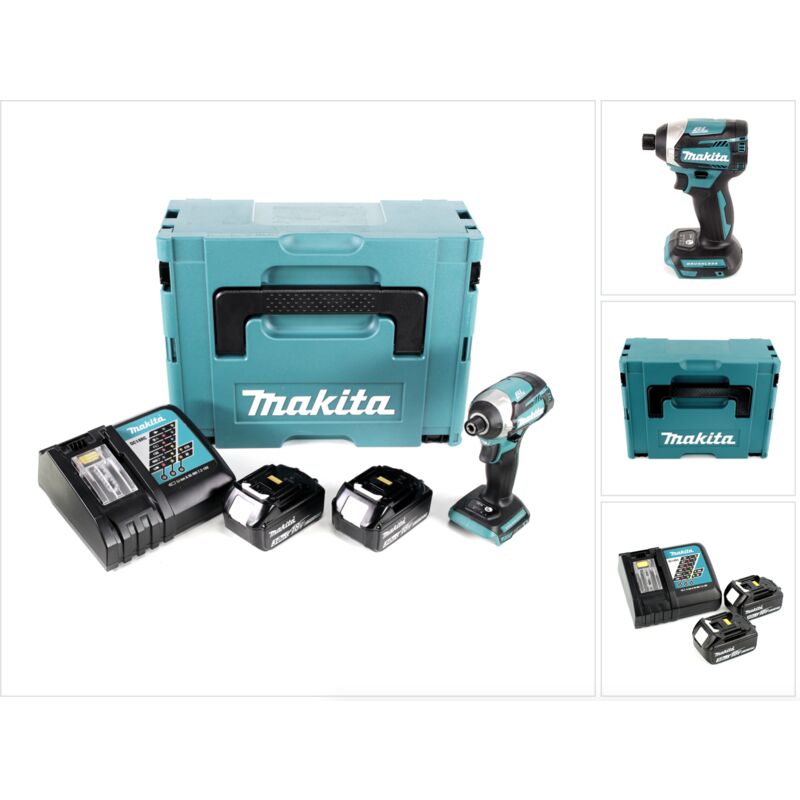 Dotazione: - 1x Makita DTD 154 18 V Avvitatore ad impulsi a batteria - 2x Batterie Makita BL 1830 18 V 3 Ah - 3000mAh - 1x Caricatore Makita DC 18 RC 7,2 - 18 V per batterie al litio - 1x Valigetta Makita MakPac 2 - 1x Inserto universale Makita Descrizione prodotto: L'avvitatore a batteria Makita DTD 154 è leggero, compatto ed estremamente potente, grazie al suo motore brushless. La macchina è dotata di una modalità a T, in cui l'avvitatore a percussione inizia con una coppia dura che viene automaticamente trasferita in una modalità a impulsi che consente di avvitare in modo ottimale le viti autoperforanti. Il Makita DTD 154 ha 3 livelli di regolazione della coppia e un variatore di velocità che aumenta all'aumentare della pressione sul grilletto. Grazie al collegamento a innesto da 1/4, il cambio punte è facile e veloce. Il cordless Impact Driver Makita DTD 154 è dotato di un LED integrato per lavorare nei luoghi più bui e di un'impugnatura ergonomica in gomma Soft Grip che assicura