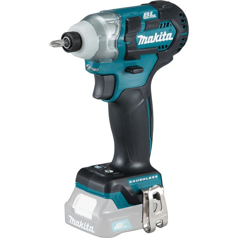 Benefici per l'utente dell'avvitatore ad impulsi Makita TD111DZJ: Impugnatura ergonomica. Rivestimento Soft-Grip. LED Illuminazione. Reversibilità. Interruttore elettronico. Gancio per cintura. L'vvitatore TD111DZJ viene fornito privo di batterie e caricabatterie. Dati tecnici: Tensione 10,8 V Capacità 4 Ah Velocità a vuoto (L) 0 - 1300 g/min Velocità a vuoto (H) 0 - 3000 g/min Colpi al minuto 1600 - 3900 c/min Dim. lxwxh 135x66x229 mm Peso (EPTA) 1,1 KG Coppia max 135 Nm