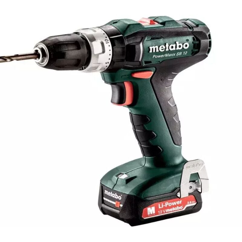 Trapano a percussione leggero e compatto dalla forma estremamente corta per impieghi versatili La classe 12 Volt Metabo - facili da tenere in mano, forti nell'uso Funzione di percussione per forare murature Integrata luce di lavoro a LED con funzione bagliore residuo per un'illuminazione ottimale nell'area di lavoro Con pratico gancio da cintura e alloggiamento inserti, da fissare a destra o a sinistra Batterie con indicatore dell'autonomia residua Tecnologia Ultra-M: massime prestazioni, carica sicura e 3 anni di garanzia sulla batteria. Dati tecnici: Tipo di batteria: Li-Ion Tensione batteria: 12 V Capacità batteria: 2 x 2 Ah Coppia max. (avvit. morbido): 17 Nm Coppia max. (avvit. duro): 40 Nm Coppia regolabile: 0.5 - 5 Nm Diametro foratura muratura: 10 mm Diametro foratura acciaio: 10 mm Diametro foratura legno tenero: 18 mm Numero giri max. a vuoto: 0-360 0-1400 giri/min Numero max. di percussioni: 21000 /min Apertura mandrino: 1.5 - 10 mm Peso (con batteria): 1.1 kg