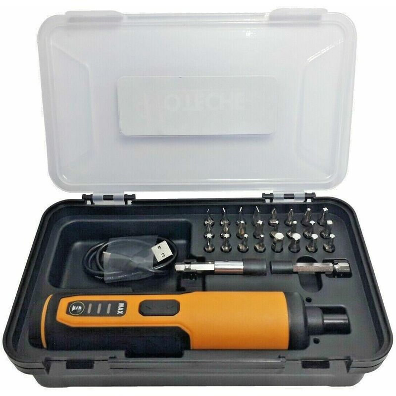 Mini cacciavite a batteria al litio da 3.6V. Dotato di 24 inserti e 2 prolunghe che consentono lo smontaggio / montaggio di vari oggetti. Specifiche Batteria ricaricabile da 3.6V 1.3Ah tramite USB 250 RPM 2 LED Reversibile Attacco inserti da 1/4" Coppia massima: 4Nm Tempo di ricarica: 3-5 ore Inserti (25mm) Taglio: 3, 4, 5 e 6mm PH0, PH1, PH2, PH3 PZ0, PZ1. PZ2, PZ3 T10, T15, T20, T25 H3, H4, H5, H6 S0, S1, S2, S3 Contenuto della confezione Cavviavite Cavo USB 24 Inserti 1 inserto PH da 50mm 1 Porta inserti da 60mm