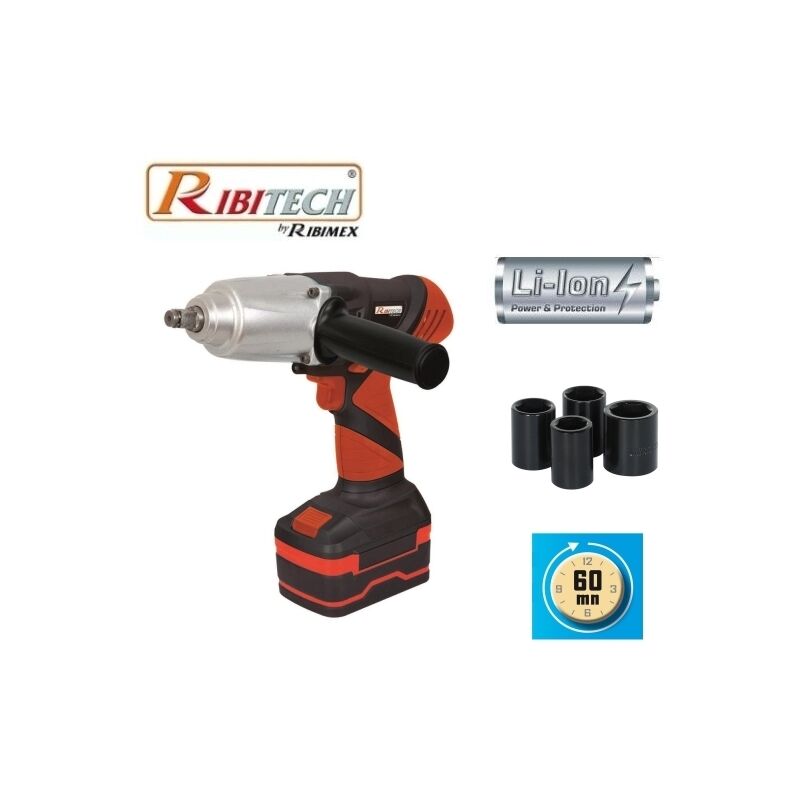 Avvitatore ad impusi ribitech prlcc 18 con batteria al litio da 18 Volt, ideale se non indispensabile per le Officine meccaniche e per gli interventi fuori sede. Dotato di batteria a litio da 18 volt con 2600 mAhgarantisce elevate prestazioni con una elevata coppia massima di serraggio di ben 450 Nm. In dotazione: - Comoda Valigetta in plastica antiurto - Caricabatteria con indicatore di di ricarica - Bussole delle seguenti misure: 23mm - 21mm - 19mm - 17mm - Batteria Litio (V-mAh): 18 - 2600 - Caricatore rapido con indicatore di ricarica (V/Hz): 100-240 / 18V - Interruttore a scatto 2 posizioni: avvitamento - svitamento - Mandrino quadrato: 1/2� - Coppia massima (Nm): 450 - Velocit� a vuoto ( giri/min): 0-4400 - Tempo di ricarica Batteria (min): 60 - 4 ghiere (mm): 17, 19, 21, 23.