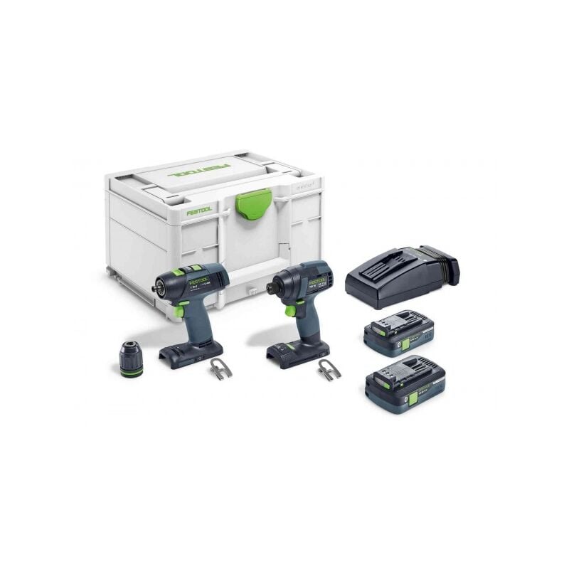 Il Set di avvitatori 18 V e batterie TID 18 HPC 4,0 I-Set T18 Festool 577244 garantisce performance incredibili in ogni situazione di foratura o avvitatura. Questo kit di avvitatori comprende il trapano avvitatore T18+3 e l'avvitatore a percussione TID 18, entrambi elettroutensili professionali da 18 V alimentati da motore Brushless ad alte prestazioni.Di seguito le specifiche per i prodotti inclusi nel kit:Il trapano avvitatore Festool T 18+3-Basic Trapano avvitatore a batteria è realizzato con motore EC-TEC Brushless che ottimizza l'energia erogata dalle batterie migliorando la resa operativa e riducendo l'usura dei componenti grazie all'assenza di carboncini. Il motore EC-TEC predisposto con microprocessori offrono gestione elettronica del motore sorvegliando e comandando temperatura, tensione, assorbimento di corrente del motore, elettronica e batteria.L'avvitatore T 18+3 HPC 4,0 I-Set, compatto e leggero, correlato con le batterie Li-High Power Compact garantisce piena potenza