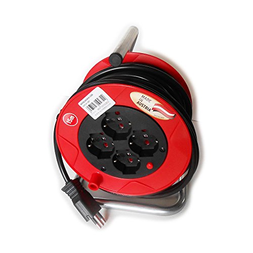 BRENNENSTUHL 25 MT DI PROLUNGA AVVOLGICAVO ELETTRICA 230V DA 16A CON 4 PRESE SCHUKO CON PROTEZIONE ANTI SURRISCALDAMENTO COLORE ROSSO 1219055