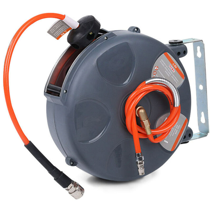 Specifiche: Materiale: PVC + PP + ABS Avvolgitubo: 28 * 28 * 10 cm / 11,0 * 11,0 * 3,9 pollici Pressione di esercizio del tubo: 213 PSI / 15 (kgf/cm2) Lunghezza del tubo di uscita dell'aria: 900 cm / 29,5 piedi Lunghezza del tubo di ingresso dell'aria: 100 cm / 3,3 piedi Diametro esterno del tubo: 1 cm / 0,4 pollici Diametro interno del tubo: 0,65 cm/0,3 pollici Peso della confezione: ca. 7 kg / 15,4 libbre >1* Staffa di montaggio 2* Vite