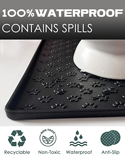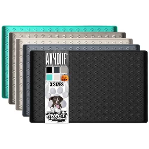 AVYDIIF Tappetino per cani, tappetino per cibo per cani e gatti, tappetino antiscivolo in silicone, tappetino impermeabile con bordo, lavabile in lavastoviglie (M: 48 x 30 cm, nero)