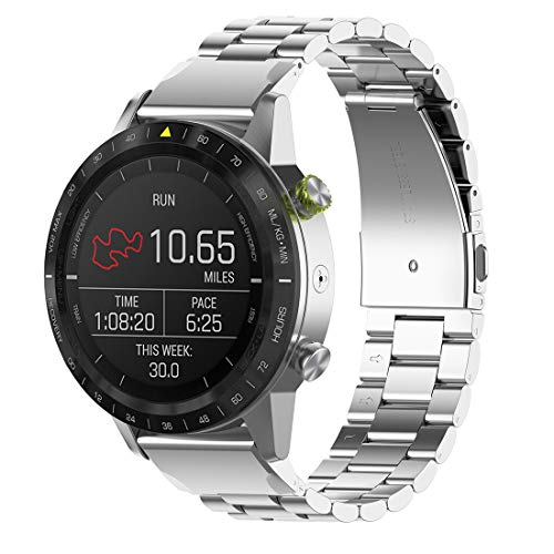 AWADUO Cinturino di ricambio per Garmin Forerunner 935, in acciaio inox, per Garmin Forerunner 945/935/Fenix 5 Plus/5/Quatix 5/5 Sapphire (metallo argento)