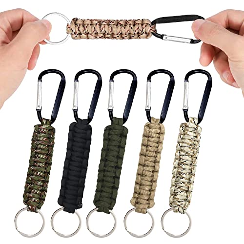 AWAVM 5 Pezzi Portachiavi Moschettone Paracord Corda, Portachiavi in Corda per Ombrello, Corda di Nylon Intrecciata Portachiavi, Moschettone Portachiavi, Zaino, Alpinismo, Emergenza, Unisex