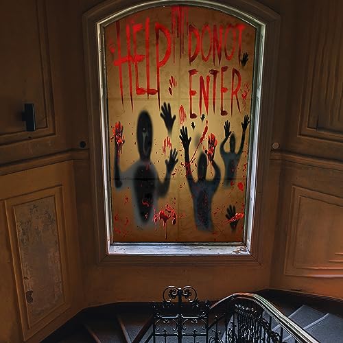 AWCIGG Halloween Decorazioni Horror per Finestre Poster di Halloween con Impronte di Mani Insanguinate Sagome di Zombie per Decorazioni Casa Horror per Feste Halloween