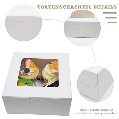 AWCIGG 20 Pezzi Scatola Cupcake con Finestra e Porta Inserti, Scatola Torta 4 Cavità, Bianca, 16 x 16 x 7,5 cm, per Pasticceria, Biscotti, Trasporto di Torte Cupcake