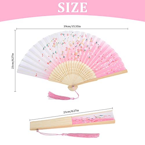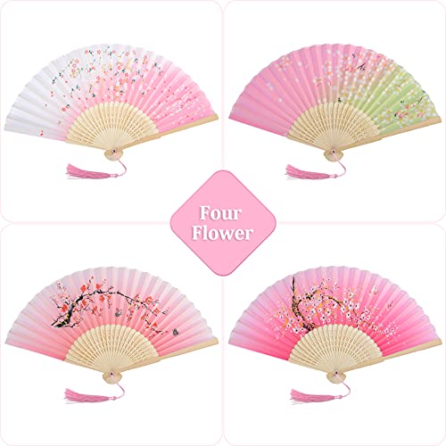 AWCIGG Ventaglio a Mano in Legno Tessuto Seta e Bambù Ventaglio Stile Giapponese Cinese con Nappe Asiatico Ventaglio a Mano per Elegante Donna Matrimonio Estate Bambini Ragazze Uomini 4 Pezzi