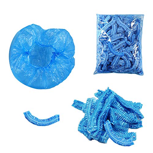 Aweisile Cuffie Doccia Monouso 100 pezzi Cuffia Doccia Cuffia da doccia usa e getta impermeabile a prova di polvere elastica Blu, per in viaggio Casa Hotel Hair Salon colorazione dei capelli