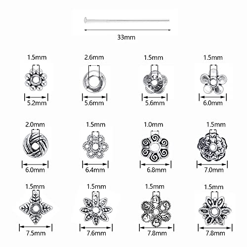 Aweisile 560 pezzi Coppette Copriperla Perline Chiodini Spille Accessori Pendenti in Argento Tibetano Perline Distanziali per Creazione Gioielli Bigiotteria Collane Pendenti