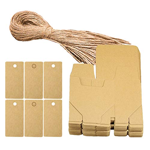 Il pacchetto include: Questo pacchetto include 50 pezzi di confezione regalo Kraftpaper con etichette regalo e corda di iuta.