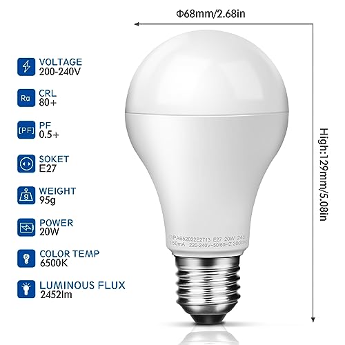 Awenia Lampadina LED E27, Lighting 20W (Equivalente a 150W), Bianco Freddo 6500K, 2452lm, Confezione da 4
