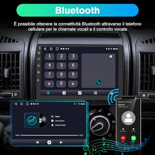 【Car Radio con Bluetooth】Possiamo connetterci alla funzione bluetooth in qualsiasi momento, in modo da poter sincronizzare i contatti, effettuare chiamate bluetooth e ascoltare meravigliosa musica bluetooth. Guida comodamente e goditi una guida fluida.