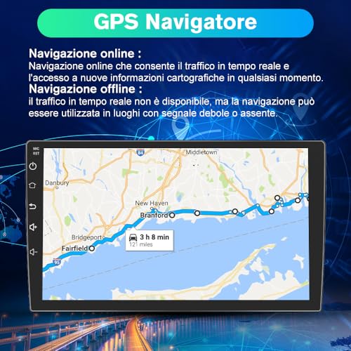 【Stereo con WIFI GPS EQ】Autoradio supporta la connessione a WIFI o hotspot personale del telefono cellulare, in modo da poter utilizzare il navigatore online, guardare video di Youtube o qualsiasi APP online. Ma non supporta le funzioni 4G e SIM.
