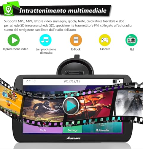 AWESAFE Bluetooth Navigatore Camion Camper 9 Pollici 2024 GPS Navigatore Satellitare Auto Autobus Taxi, Avviso Traffico Vocale, Limite di Velocità, Aggiornamenti gratuiti delle mappe a vita