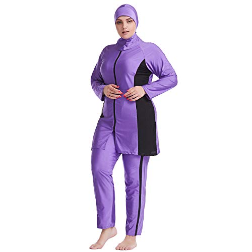Awesocrafts Costumi da Bagno Musulmani per Le Donne Plus Size Burkini Costumi da Bagno Musulmani Strisce, Viola, XL