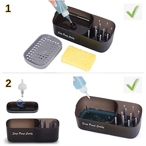 Elimina L'ingombro del Lavello - Niente più fuoriuscite, sgocciolamenti o strascichi disordinati! L'erogatore di sapone da cucina con il relativo supporto consente di tenere spugne, detergenti, stracci e spugnette in un unico posto e di tenere l'acqua lontana dai banconi della cucina.