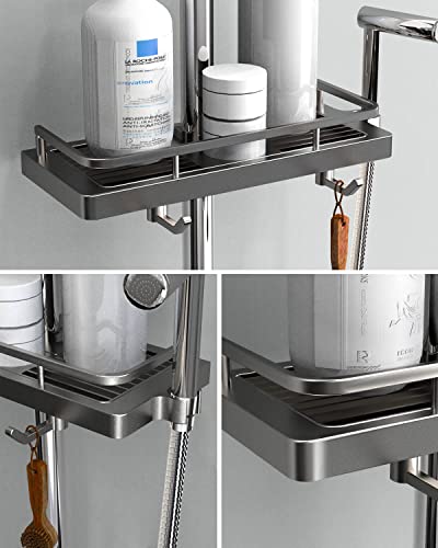 AwmnSrman Mensola Doccia Senza Foratura Portasapone Doccia, Supporto per Accessori da Bagno con 2 Ganci e Supporto per Doccia, Adatto per Aste da Doccia 20mm-25mm Grigio Scuro