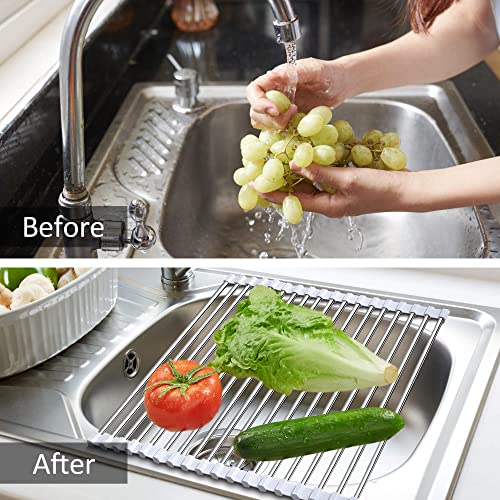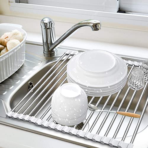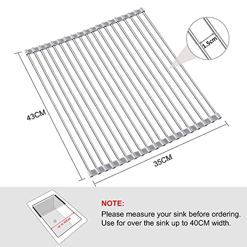 Facile da Pulire e Conservare: uesto stendino lavabile in lavastoviglie può essere arrotolato per una facile pulizia e riposto una volta terminato l'utilizzo, senza occupare ulteriore spazio. Si prega di misurare il lavello prima di acquistare questo scolapiatti organizzatore da cucina!