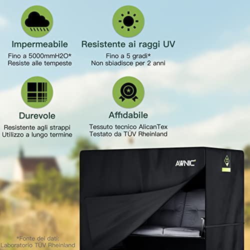 AWNIC Copertura Dondolo 3 Posti, Telo Copri Dondolo da Giardino Impermeabile Durevole per Esterni Anti-UV Impermeabile Ntivento e Antipolvere 210x125x170cm