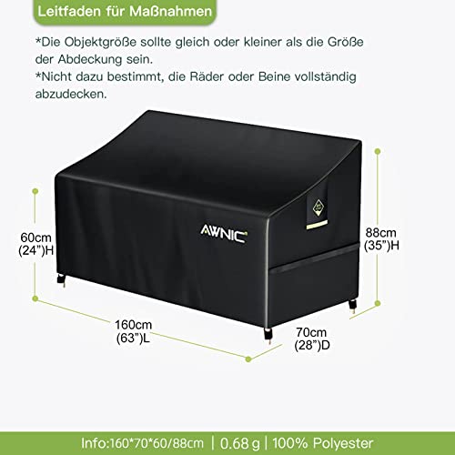 AWNIC Copridivano per panchina da giardino a 3 posti, 160 cm, con prese d'aria, copertura per divano esterno, impermeabile, resistente agli strappi in poliestere