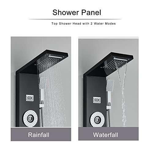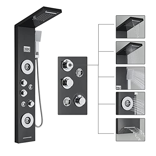 AWorddy Colonna Doccia Idromassaggio con Miscelatore Modern Doccia Soffione Colonna 5 Funzioni Pannello Doccia per Bagno con di Temperatura LCD Display Nera