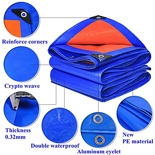 AWSAD Telone Impermeabile 0,32 Mm Panno Antipioggia in PE Telone Impermeabile per Esterno Piante da Giardino Capannone Barca Telone Telo Copertura (Color: Blue+Red, Size: 6x10m)