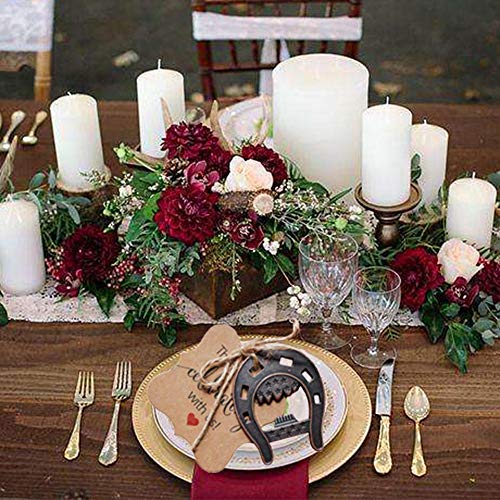 In ghisa massiccia per una lunga durata. Il ferro di cavallo nero portafortuna è adatto per la maggior parte degli eventi fortunati, per decorare matrimoni, feste di anniversario, baby shower o feste di compleanno con i ferri di cavallo.