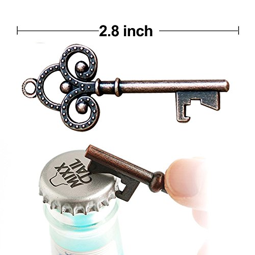 La confezione include: 50 pezzi di carta kraft rettangolare, 50 apribottiglie vintage e 50 scatole per caramelle a forma di scheletro