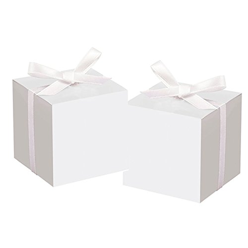 Awtlife Scatole quadrate per bomboniere/dolci con 50 fiocchi, ideali per feste nuziali, 5 cm, colore bianco, 50 pezzi