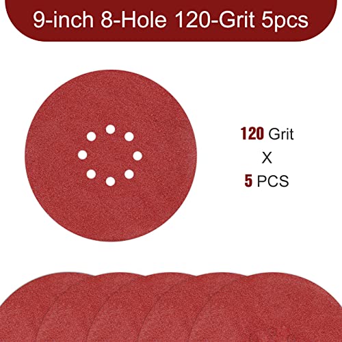 Awutzut Dischi Abrasivi 225 mm 8 Fori Grana 120 Carta Vetrata Abrasiva 5PCS per Levigatrice Muro