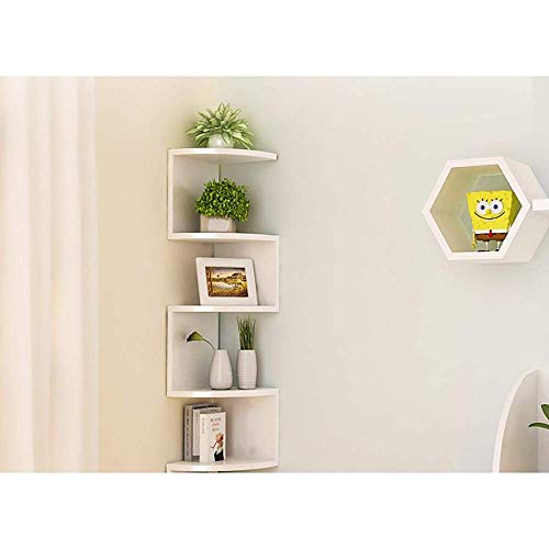 AWYDHC Mensole angolari fissate a Parete, mensola ad Angolo Radiale Classica Rettangolare a 5 Livelli for riporre Gli scaffali delle librerie (Color: White)